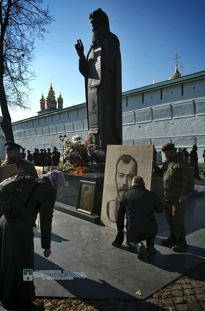 В этот день у стен Лавры людно, в память о преставления преподобного Сергия на службу собирается довольно много паломников. Участники крестного хода расположились у памятника Преподобному Сергию Радонежскому, читают «Отче Наш». Потом, пока мужчины организовываются и выстраиваются с иконами, крестами и штандартами, женщины задушевно и хором поют: