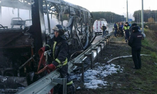 На «Ярославке» сгорел автобус, ехавший из Сергиева Посада в Москву (ФОТО+ВИДЕО)