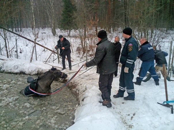 Необычное происшествия произошло около деревни Смена Сергиево-Посадского района, где в приусадебное озеро провалился конь по кличке Космос. Животное попросту повторило глупейший шаг, часто совершаемый любителями зимней рыбалки, и ступило на еще не окрепший лед. Разумеется, тот треснул и Космос едва не превратился в Нептуна.